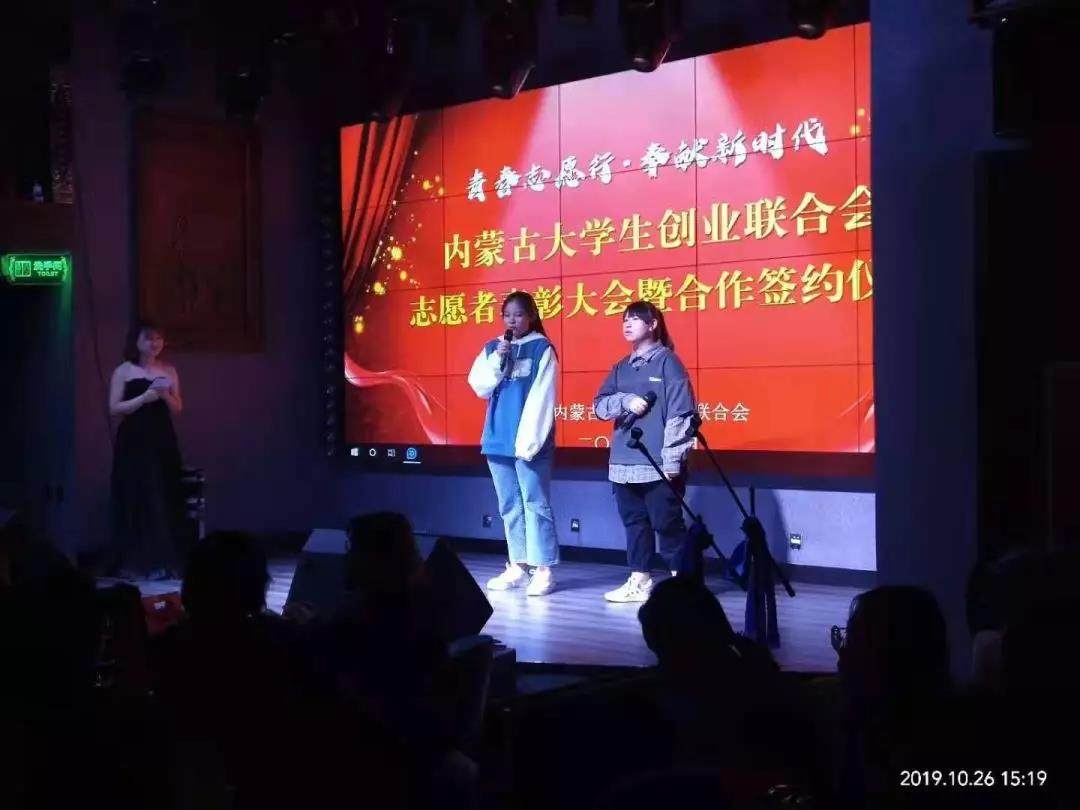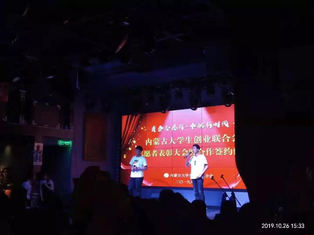 社服部携部分19级志愿者在呼和浩特市香格里拉大酒店参加了内蒙古大学生创业联合会青年志愿者表彰大会。