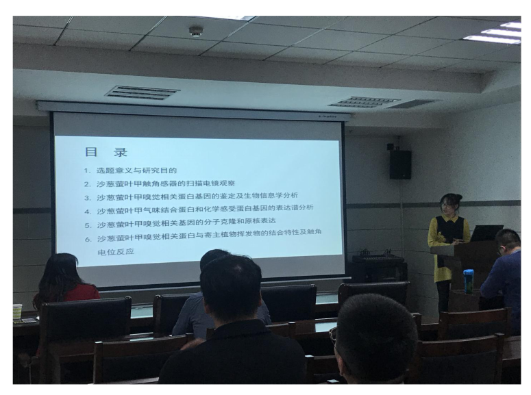为了加强植物保护学科领域青年教师及研究生之间的学术交流,提升植物保护学科科研水平和创新能力,更好地展示植物保护学科青年教师的风采,11月8日,第一期“植物保护学科青年论坛”在我校生命科学楼419会议室举办,植物保护学科青年教师及全体研究生参加了此次报告。周洪友副院长指出“植物保护学科青年论坛”在植物保护学科发展中的重要作用,并激励青年教师坚持举办此项活动,开拓科研思路,共议学科热点潮流,促进学科发展。本次论坛由植物病理学教研室主任赵明敏老师主持,邀请张文兵和李玲两位青年教师就博士期间研究内容作了报告。张文兵老师就“功能化农药新剂型的制备及其应用研究”开展了论述,李玲老师介绍了“草原主要害虫沙葱萤叶甲嗅觉识别的分子机制”研究。与会师生与两位青年教师就其研究展开了激烈的讨论和深入的交流,两位青年教师也表示在讨论与交流的过程中受益匪浅。此次论坛为植物保护学科师生提供了宝贵的交流学习机会,大家纷纷表示期待“植物保护学科青年论坛”一直延续下去。