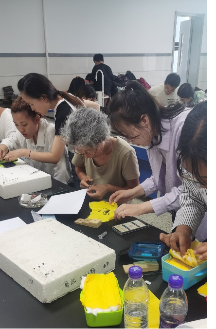 在采集昆虫的过程中,不仅锻炼了基本功,还加深了对课堂所学理论的认识,使课本上的知识在实习中得以巩固,那一句“老师,这个您在课上讲过”就是最好的印证。傍晚,同学们冒雨回到实验室,开始将白天采集到的昆虫进行分类并制作成标本。大家认真细致,踏实肯干,并认识到团队合作的重要性,无论是在捕虫的过程中还是标本制作中,组员间的协作会给工作带来很大的便利。
