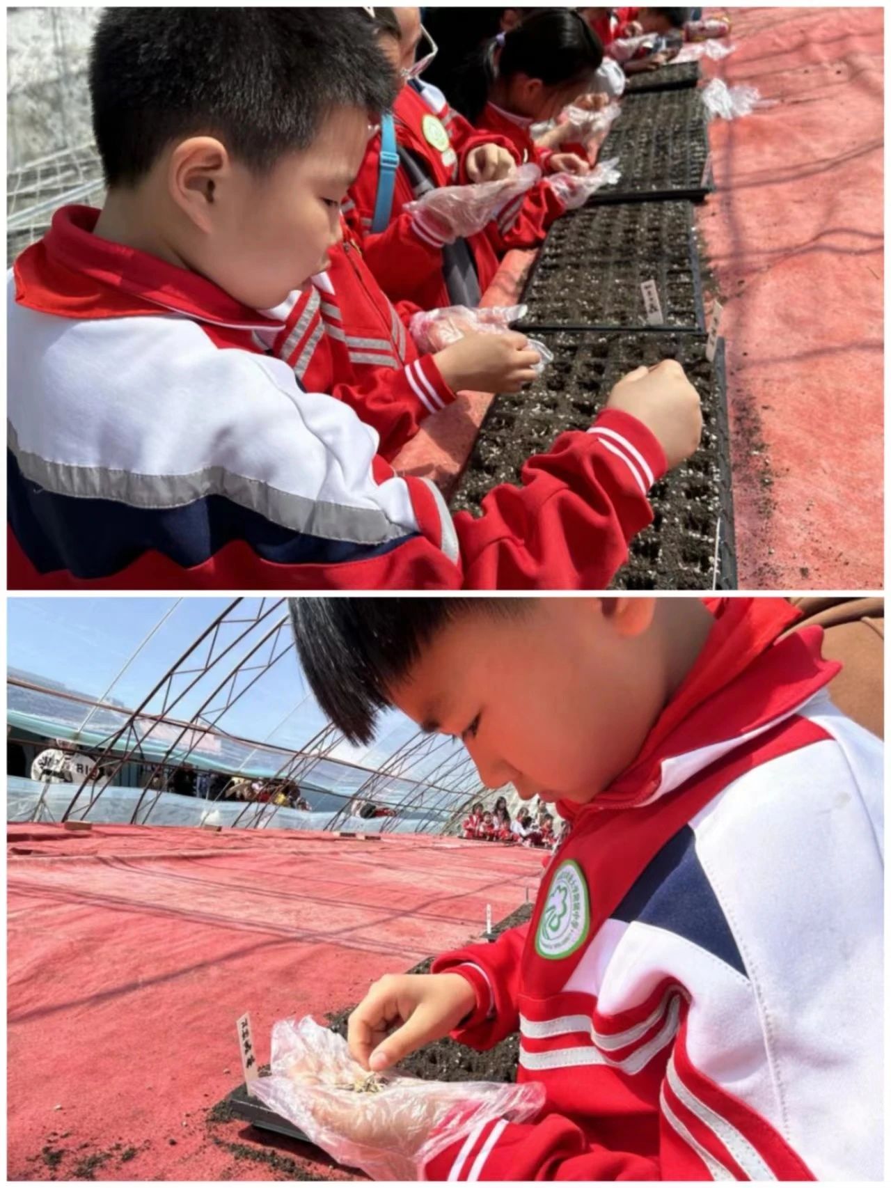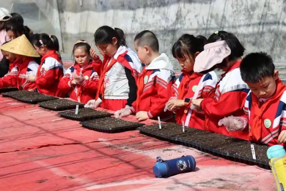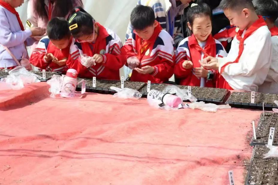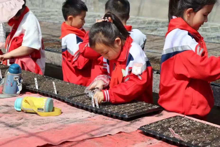 耕读文化教育基地。随着郝喜龙老师的示范讲解,同学们了解了种植孔雀草的基本步骤,个个摩拳擦掌、跃跃欲试。播种、填土、浇水……同学们个个兴奋不已,享受着“田间课堂”带给他们的喜悦,期待孔雀草的发芽,感受到了劳动的艰辛。