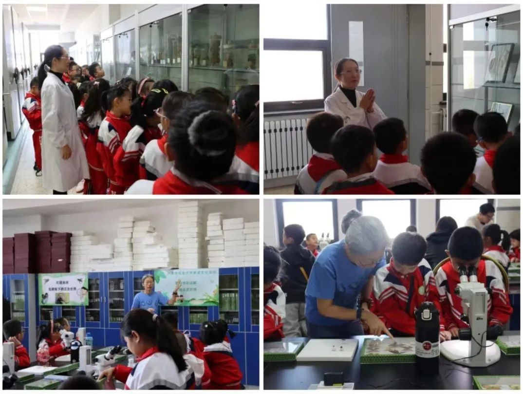 本次耕读文化研学活动,共设有参观植物病理标本室、参观昆虫标本室、体验播种活动三个部分。活动开始,同学们来到了植物病理标本室,路妍老师借助展台里的植物标本,为同学们介绍了植物标本的分类,并鼓励同学们要亲近大自然,留心观察大自然的花草树木。紧接着,同学们在志愿者的带领下来到了史丽老师的昆虫标本实验室,同学们化身小小昆虫探索家,利用显微镜观察昆虫、欣赏趣味贴画,使同学们明白了小小昆虫看似微不足道,却是生物链中重要一员,影响着整个自然界生态系统的平衡。最后,在志愿者的带领下,同学们来到了成人网