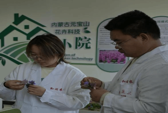 内蒙古元宝山花卉科技小院驻扎研究生李学芬讲述并示范胸花制作