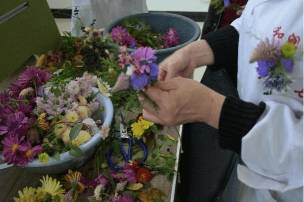重庆市职业院校的教师们在指导下开始进行新鲜花材的采摘工作